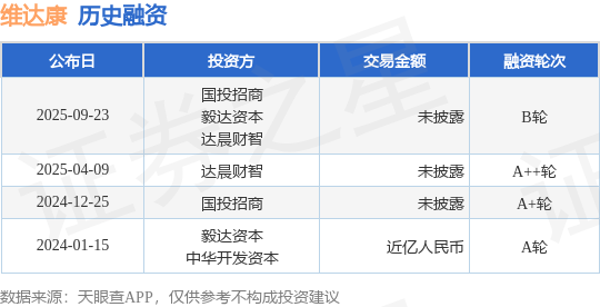 证券之星消息,根据天眼查APP于9月23日公布的信息整理,河北维达康生物科技有限公司B轮融资,融资额未披露,参与投资的机构包括国投招商,毅达资本,达晨财智。